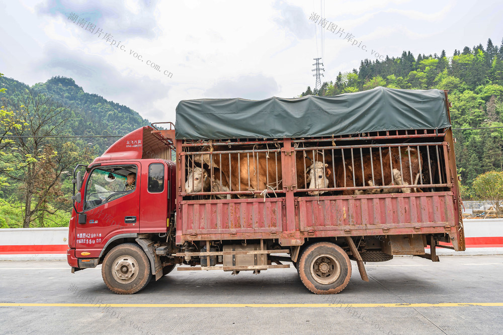 4月11日,吉首市乾州街道西门口,湘西活牛交易大市场逢交易日,买主拉走了满满一车活牛。