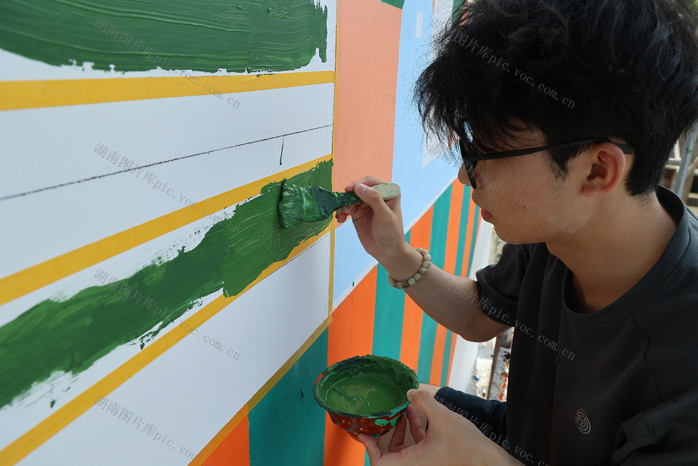 2024年7月9日-14日,湖南师范大学美术学院的大学生暑期“三下乡”社会实践活动来到五峰铺镇新田村,用专业所长绘制墙绘,通过手上的一支画笔“扮靓”新田村美丽乡村,“画”说乡村文明新风尚。 唐圭 摄