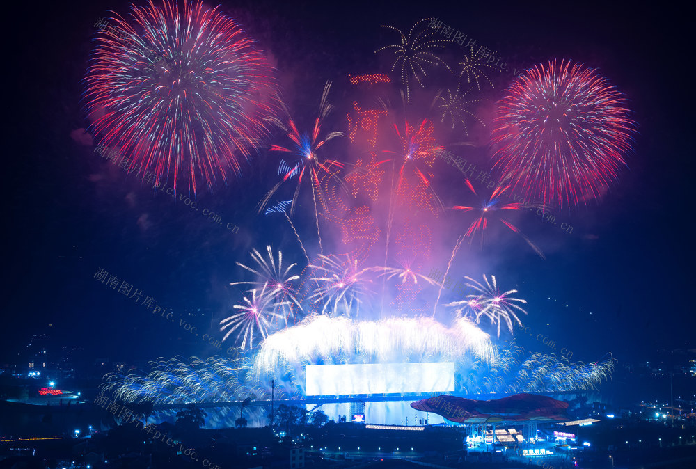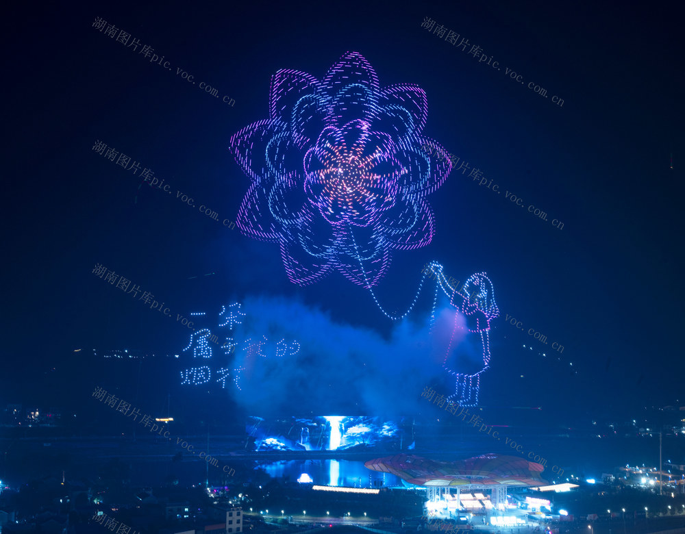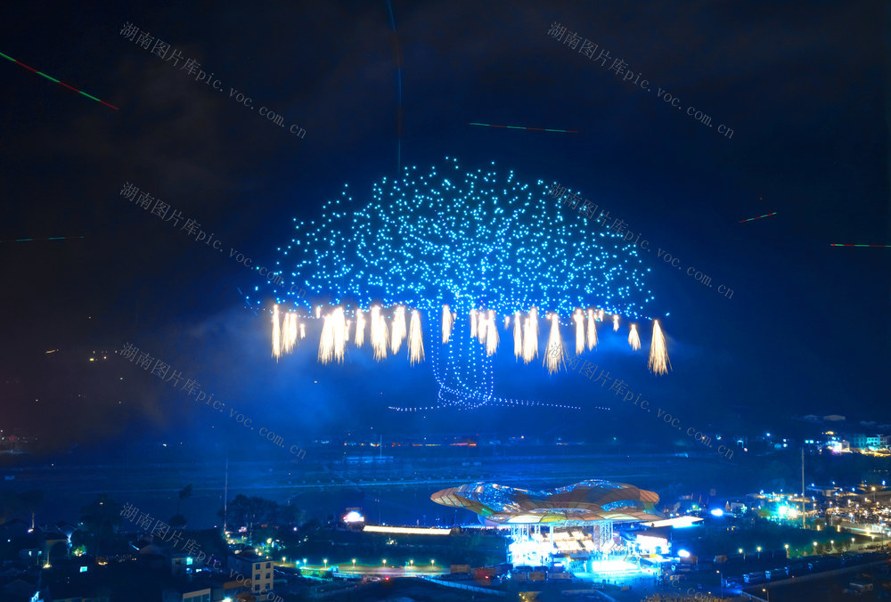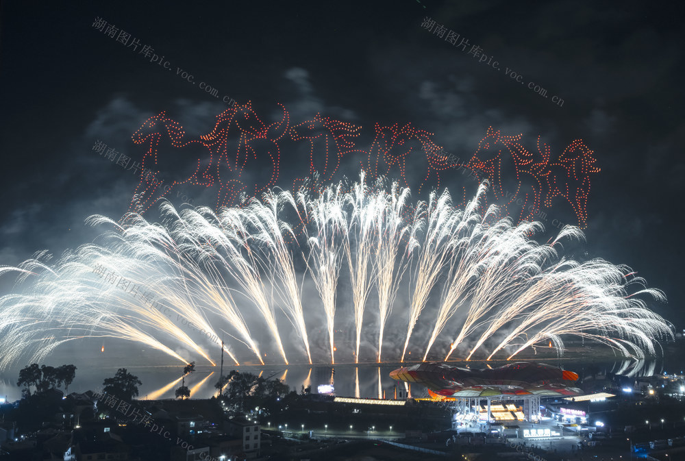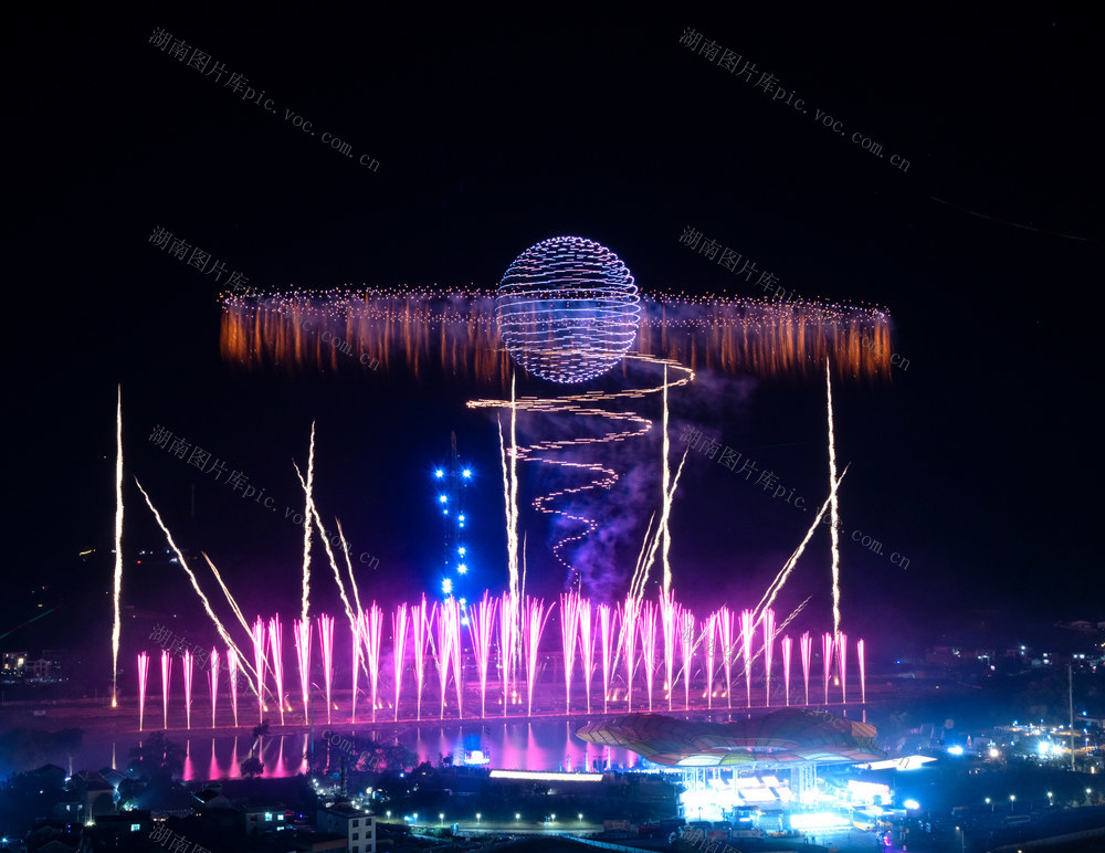 无人机与烟花的姻缘际会(无人机与烟花的无缝融合,传统文化和现代技术的巧妙联姻,演绎出的视觉冲击,让人惊艳震撼。余明周 摄)
