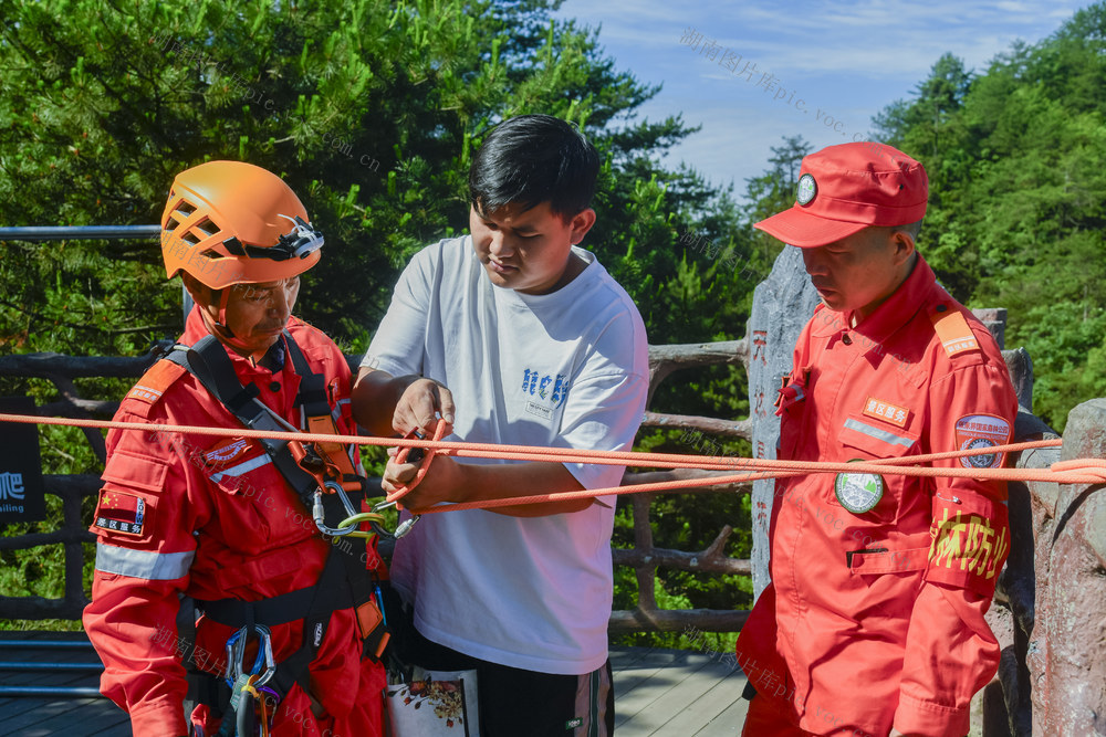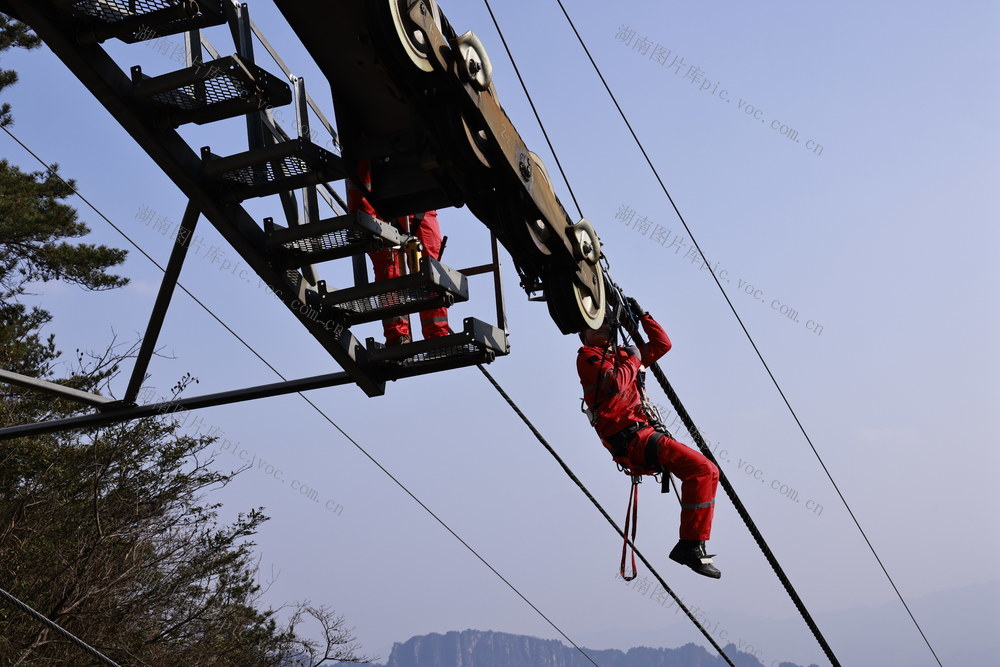2024年6月12日,张家界武陵源风景区杨家界天然长城景点,景区服务清洁工为保护自然环境,下到悬崖上捡拾垃圾,令人敬佩不已。