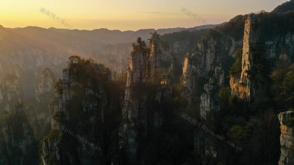 2025年11月28日,冬日的湖南张家界国家森林公园天子山景区,层林尽染,夕阳辉映下的绵延峰林宛如一幅水墨丹青画卷映入眼帘,如梦如幻、美不胜收。吴勇兵 摄