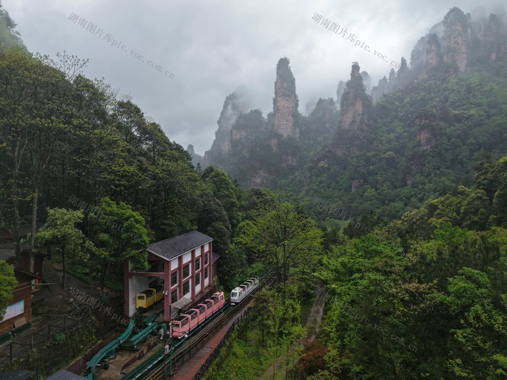 2026年4月20日,在湖南省张家界国家森林公园十里画廊景区,造型萌趣的观光小火车化身为“移动观景平台”,在峰林幽谷间缓缓穿行,与绿意盎然的奇峰秀色相映成趣,勾勒出一幅人与自然和谐共生的生态画卷。(李尚引 摄)